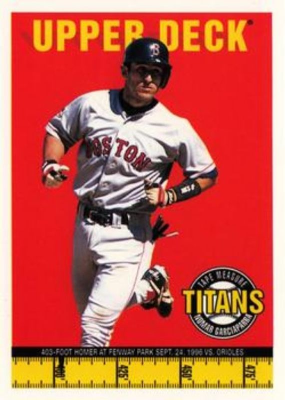 The Nomar Garciaparra 1998 Upper Deck #7 Tape Measure Titans card is 1 of 16 Nomar Garciaparra's card variations in the 1998 Upper Deck set being tracked by Sports Card Investor, including #320 Base, #452 Base, #533 Base, #616 Base, and #AS25 All Star Credentials.