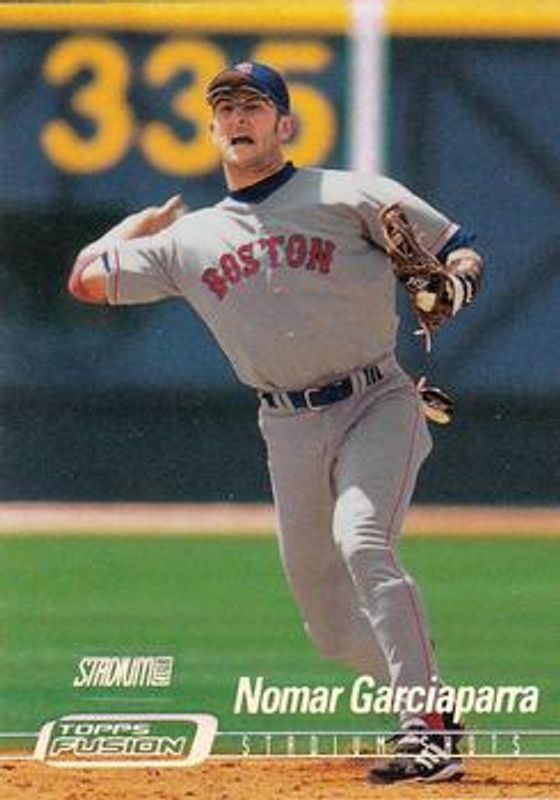 The Nomar Garciaparra 2001 Topps Fusion #180 Base card is 1 of 4 Nomar Garciaparra's card variations in the 2001 Topps Fusion set being tracked by Sports Card Investor, including #172 Base, #183 Base, and #186 Base.