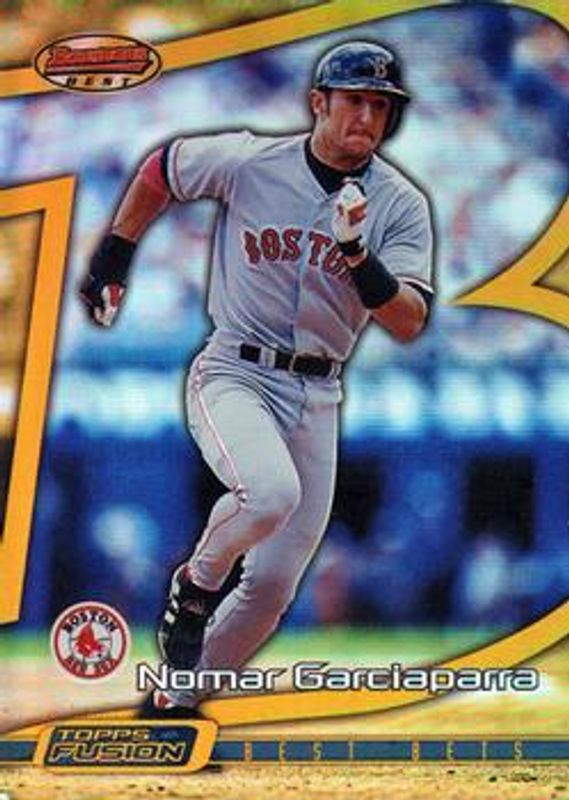 The Nomar Garciaparra 2001 Topps Fusion #186 Base card is 1 of 4 Nomar Garciaparra's card variations in the 2001 Topps Fusion set being tracked by Sports Card Investor, including #172 Base, #180 Base, and #183 Base.