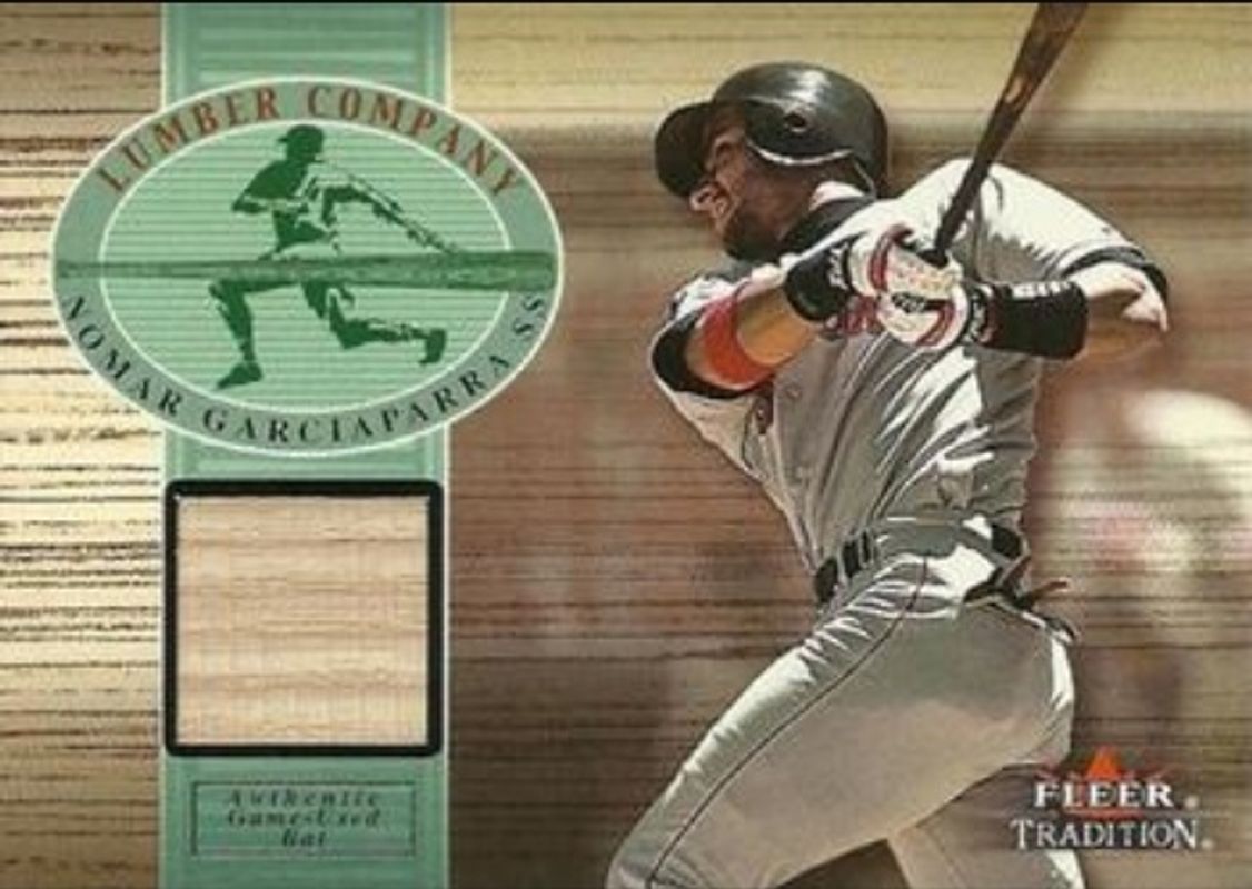 The Nomar Garciaparra 2002 Fleer Tradition Lumber Company - Game Bat card is 1 of 6 Nomar Garciaparra's card variations in the 2002 Fleer Tradition set being tracked by Sports Card Investor, including Base, Diamond Tributes, Heads Up, Lumber Company, and This Day In History.