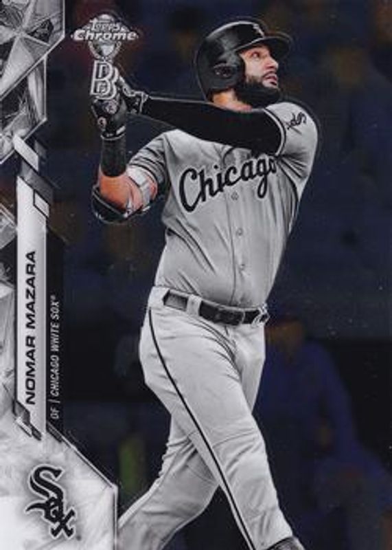 The Nomar Mazara 2020 Topps Chrome Ben Baller Edition #109 Base card is 1 of 7 Nomar Mazara's card variations in the 2020 Topps Chrome Ben Baller Edition set being tracked by Sports Card Investor, including Green Refractor /99, Blue Refractor /75, Gold Refractor /50, Orange Refractor /25, and Red Refractor /5.