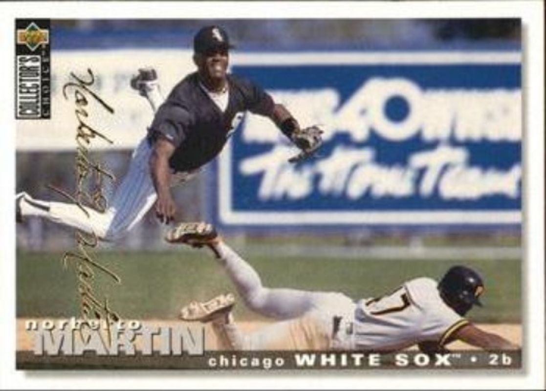 The Norberto Martin 1995 Upper Deck Collector's Choice #508 Gold Signatures card is 1 of 3 Norberto Martin's card variations in the 1995 Upper Deck Collector's Choice set being tracked by Sports Card Investor, including Base, and Silver Signatures.