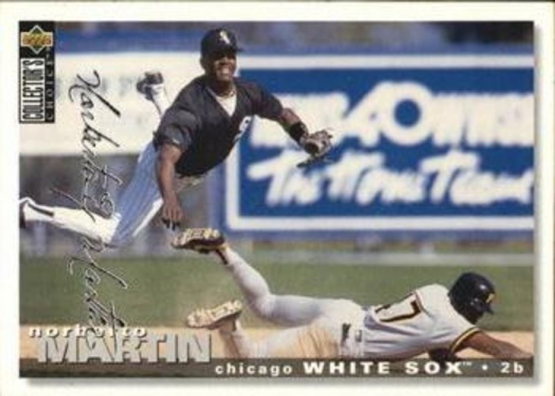 The Norberto Martin 1995 Upper Deck Collector's Choice #508 Silver Signatures card is 1 of 3 Norberto Martin's card variations in the 1995 Upper Deck Collector's Choice set being tracked by Sports Card Investor, including Base, and Gold Signatures.