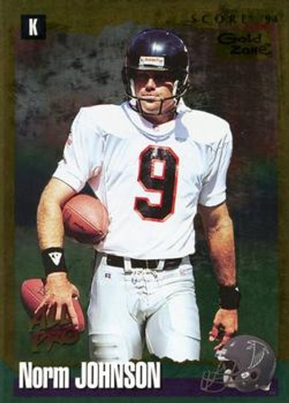 The Norm Johnson 1994 Score #189 Gold Zone card is 1 of 2 Norm Johnson's card variations in the 1994 Score set being tracked by Sports Card Investor, including Base.