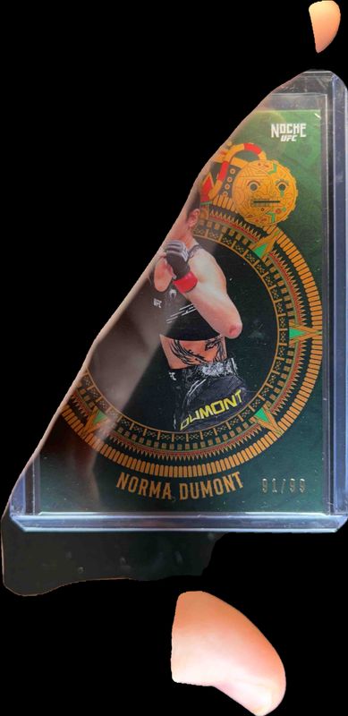 The Norma Dumont 2024 Topps Noche UFC #10 Green /99 card is 1 of 14 Norma Dumont's card variations in the 2024 Topps Noche UFC set being tracked by Sports Card Investor, including Base, Die-Cut, Silver /125, Pink /75, and Blue /49.