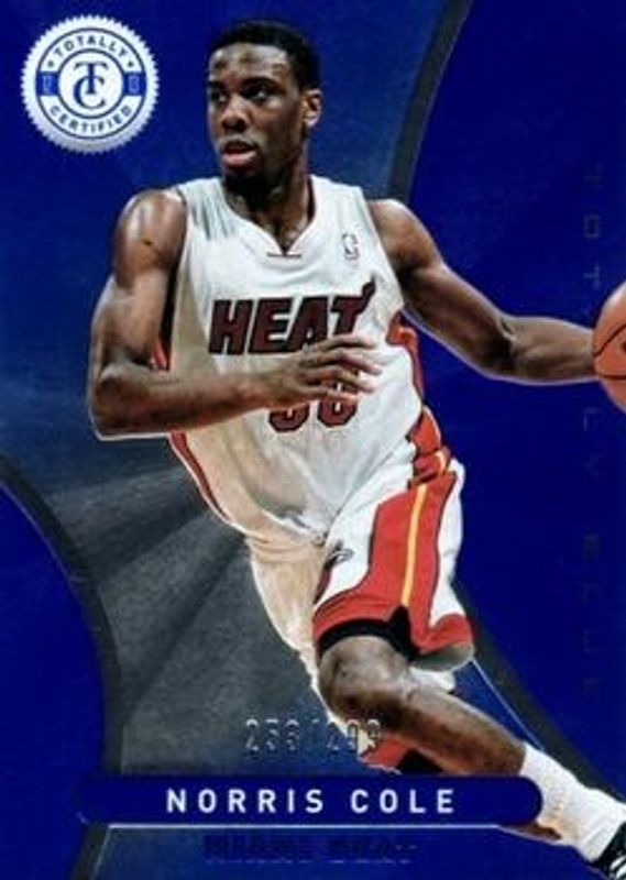 The Norris Cole 2012 Totally Certified #126 Totally Blue /299 Rookie card is 1 of 16 Norris Cole's card variations in the 2012 Totally Certified set being tracked by Sports Card Investor, including Base, Totally Red /499, Totally Gold /25, Totally Green /5, and Printing Plate Black /1.