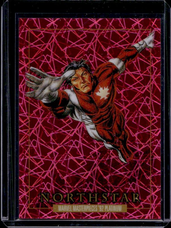 The Northstar 2024 Upper Deck Marvel Masterpieces '92 Platinum #69 Pink Laser /992 card is 1 of 38 Northstar's card variations in the 2024 Upper Deck Marvel Masterpieces '92 Platinum set being tracked by Sports Card Investor, including Base, Blue Traxx, Canvas, Clear Cut, and Emerald Surge.