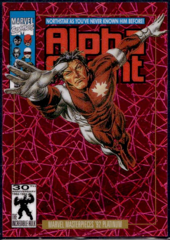 The Northstar 2024 Upper Deck Marvel Masterpieces '92 Platinum #69-V Variant Cover - Pink Laser /692 card is 1 of 38 Northstar's card variations in the 2024 Upper Deck Marvel Masterpieces '92 Platinum set being tracked by Sports Card Investor, including Base, Blue Traxx, Canvas, Clear Cut, and Emerald Surge.