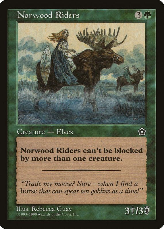 The Norwood Riders 1998 Portal Second Age Base card in Raw TCG (Near Mint) condition has not changed in price in the last 30 days and was last sold for $1.19 .