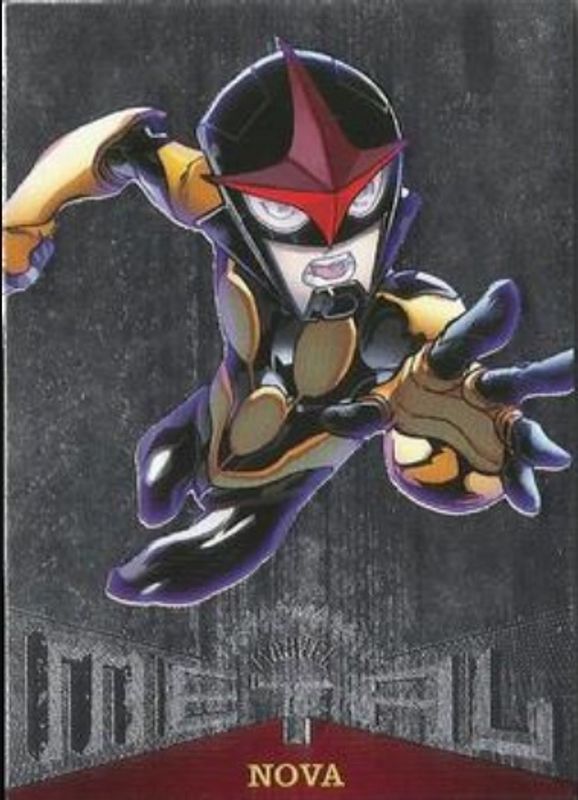 The Nova 2017 Fleer Ultra Spider-Man #MM41 Marvel Metal card is 1 of 13 Nova's card variations in the 2017 Fleer Ultra Spider-Man set being tracked by Sports Card Investor, including Precious Metal Gems Bronze /199, Precious Metal Gems Red /99, Precious Metal Gems Patterned /(SSP), Precious Metal Gems Blue /49, and 1995 Ultra Spider Man Buybacks /30.