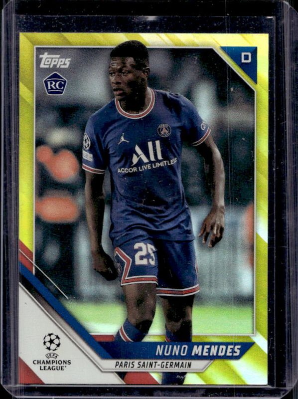 Nuno Mendes 2021 Topps UEFA Champions League #126 Yellow Foil /250 Rookie RAW Price Guide
