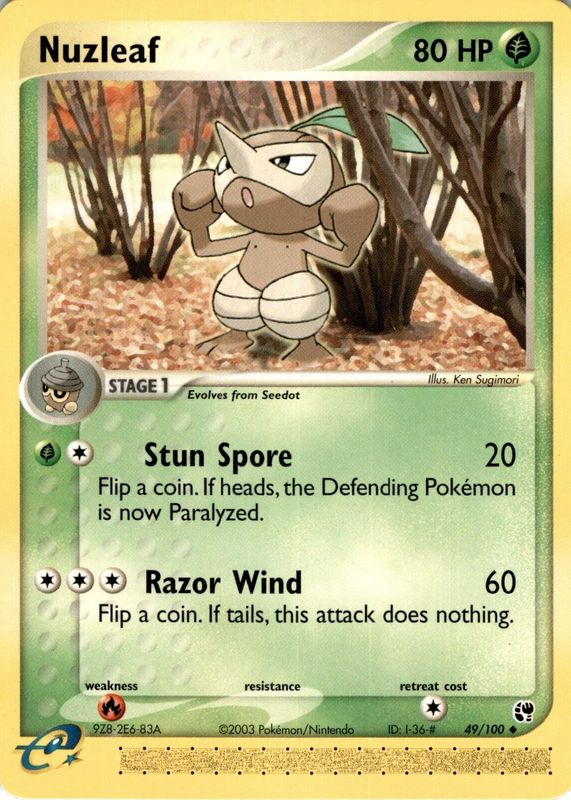 Nuzleaf 2003 EX: Sandstorm #048/100 Base RAW TCG (NEAR MINT) Price Guide