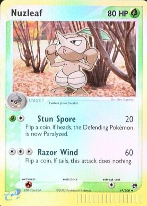 Nuzleaf 2003 EX: Sandstorm #049/100 Reverse Holo RAW TCG (NEAR MINT) Price Guide