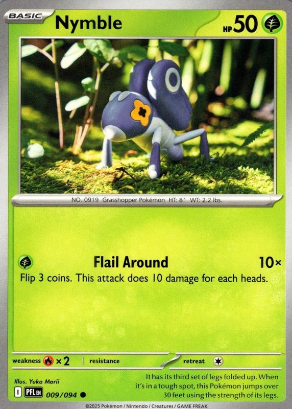 The Nymble 2025 Mega Evolution: Phantasmal Flames #9/94 Base card in Raw TCG (Lightly Played) condition has not changed in price in the last 30 days and was last sold for $1.98 .