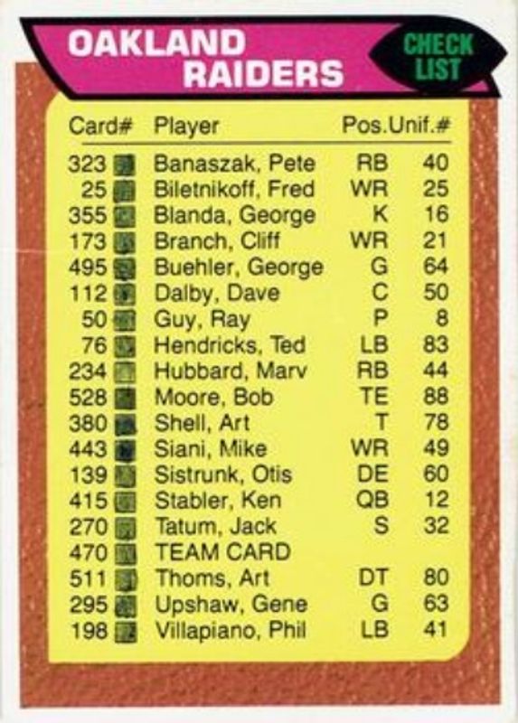 Oakland Raiders 1976 Topps #470 Team Checklist RAW Price Guide