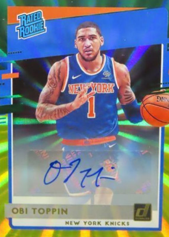 Recent Sales of Obi Toppin 2020 Donruss #229 Rated Rookie Signatures - Holo Green & Yellow Laser BGS 9