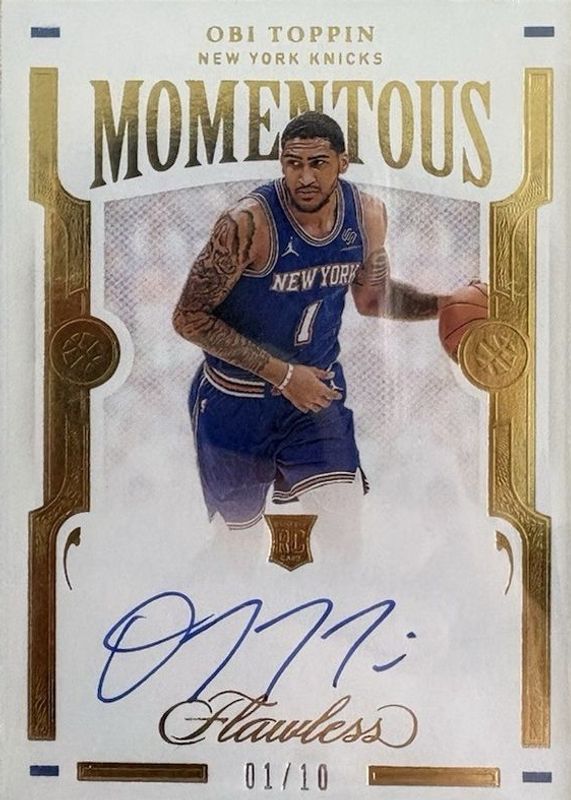 Auctions Ending Soon for Obi Toppin 2020 Flawless #MOM-OBI Momentous Autographs - Gold /10 Rookie RAW