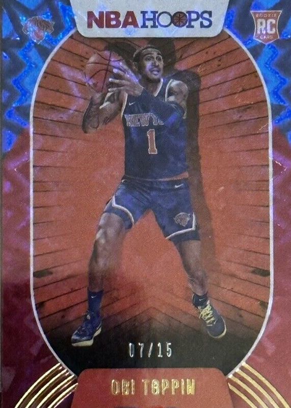 The Obi Toppin 2020 Hoops #226 Red Explosion /15 Rookie card in Raw condition has not changed in price in the last 30 days and was last sold for $52.00 .
