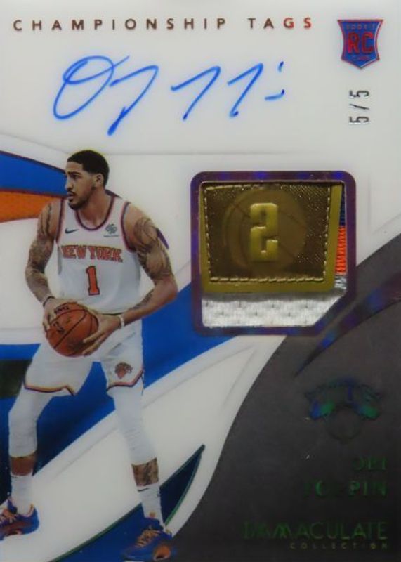 The Obi Toppin 2020 Immaculate #RCT-OBI Rookie Championship Tags Autographs /5 card in Raw condition has not changed in price in the last 30 days and was last sold for $494.78 .