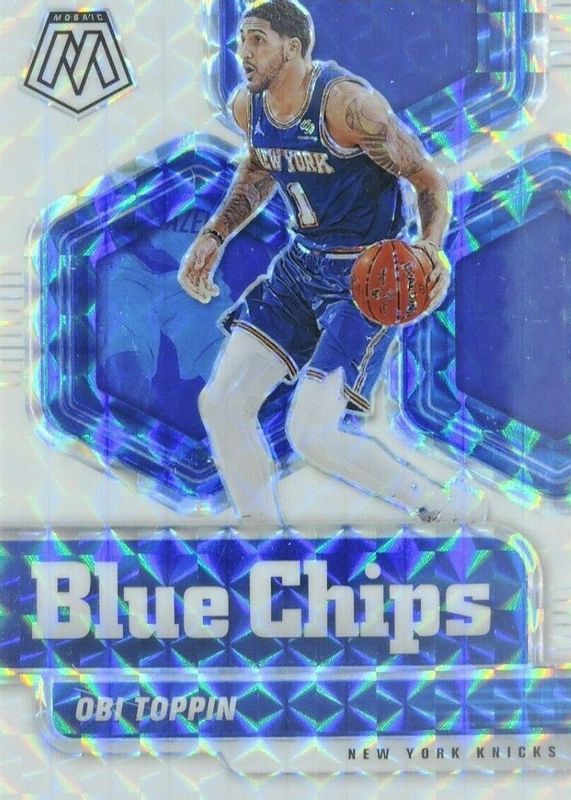 ROOKIE OBI TOPPIN 2020-21 PANINI MOSAIC #10 BLUE CHIPS WHITE PRIZM 🔥SSP /25🔥