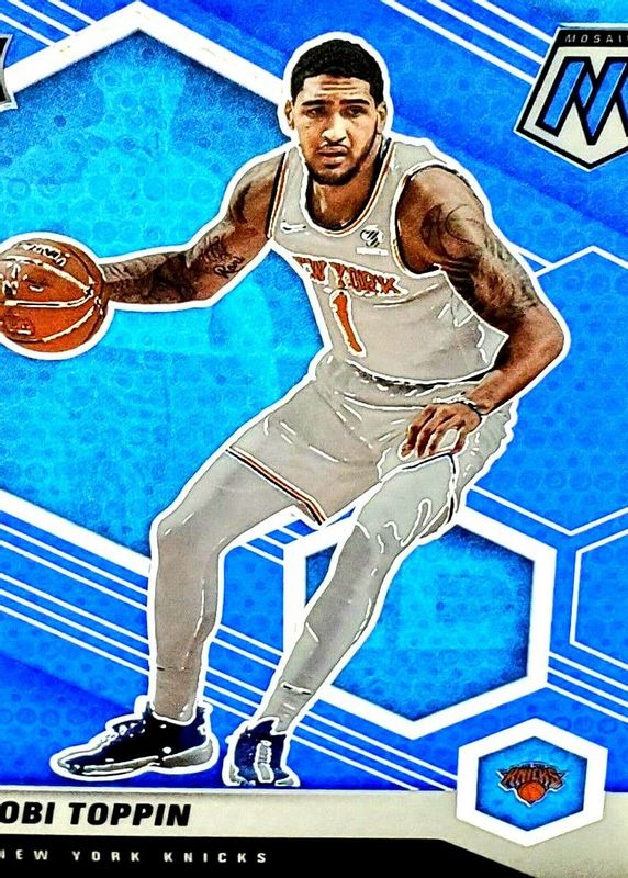 The Obi Toppin 2020 Mosaic #220 Fast Break Blue /85 Rookie card in Raw condition has not changed in price in the last 30 days and was last sold for $14.99 .