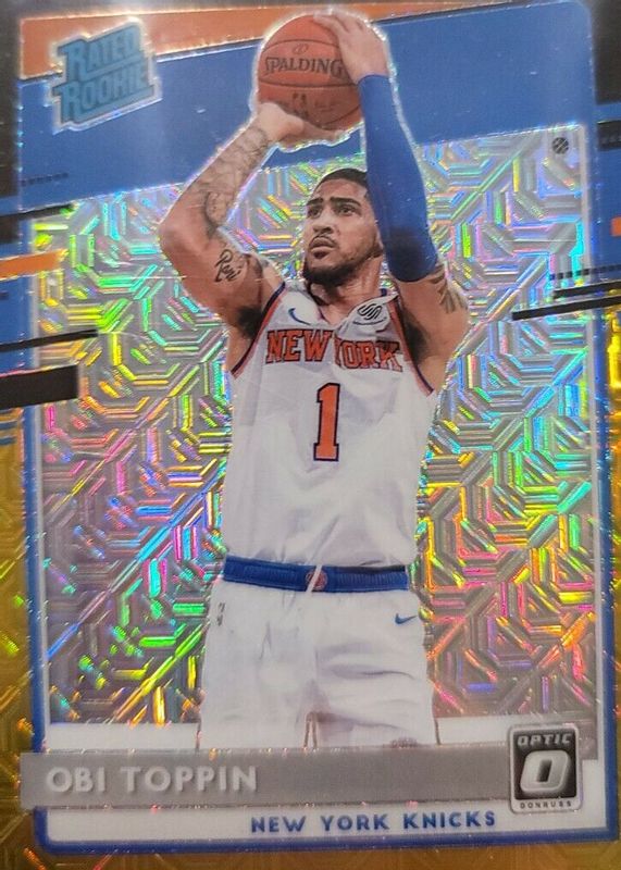 This card is 1 of 84 Obi Toppin's card variations in the 2020 Optic set being tracked by Sports Card Investor, including Base, Blue Pulsar, Blue Velocity, Checkerboard, and Choice.