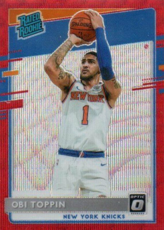 The Obi Toppin 2020 Optic #158 Red Wave Rookie card in Raw condition has not changed in price in the last 30 days and was last sold for $1.36 .