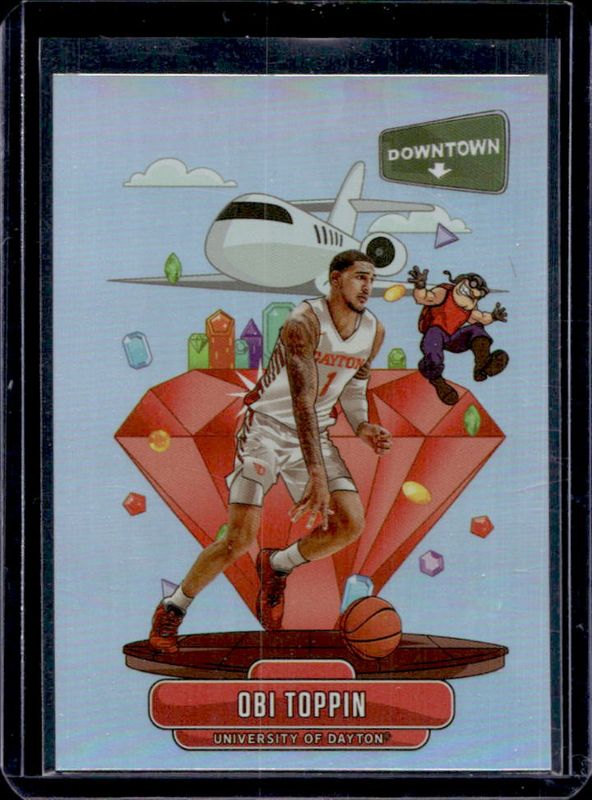 The Obi Toppin 2020 Prizm Draft Picks #D-18 Downtown /(SSP) Rookie card is 1 of 124 Obi Toppin's card variations in the 2020 Prizm Draft Picks set being tracked by Sports Card Investor, including #7 Base, #87 Base, #47 Base, #7 Choice Blue Yellow Green, and #47 Choice Blue Yellow Green.