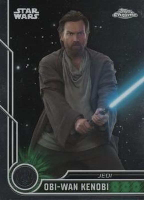 The Obi-Wan Kenobi 2023 Topps Chrome Star Wars #6 Base card is 1 of 29 Obi-Wan Kenobi's card variations in the 2023 Topps Chrome Star Wars set being tracked by Sports Card Investor, including Black Wave, Purple Wave, Refractor, Aqua /199, and Blue /150.
