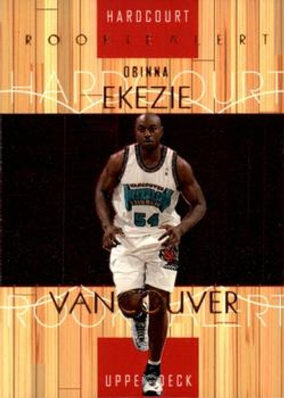 The Obinna Ekezie 1999 Upper Deck Hardcourt #89 Base Rookie card is 1 of 4 Obinna Ekezie's card variations in the 1999 Upper Deck Hardcourt set being tracked by Sports Card Investor, including Baseline Grooves Rainbow /500, Baseline Grooves Silver /50, and Baseline Grooves Gold /1.