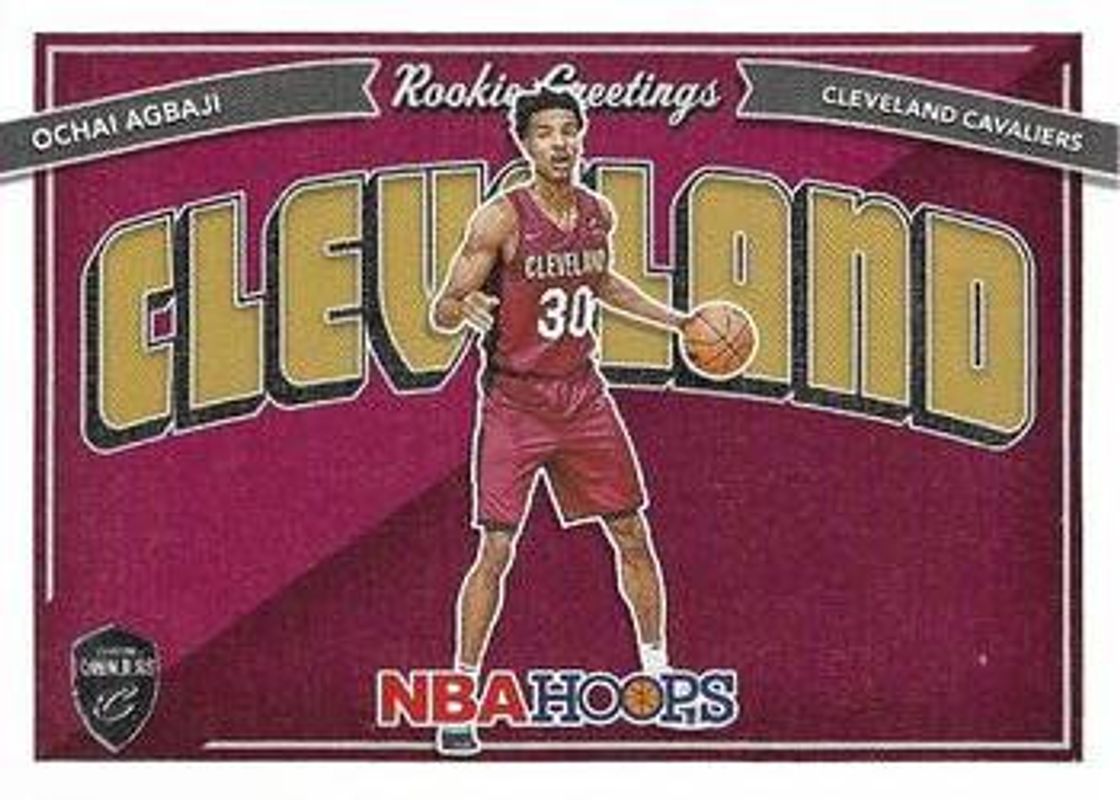 The Ochai Agbaji 2022 Hoops #14 Rookie Greetings card is 1 of 41 Ochai Agbaji's card variations in the 2022 Hoops set being tracked by Sports Card Investor, including Base, Blue, Hyper Blue, Impulse, and Neon Green.