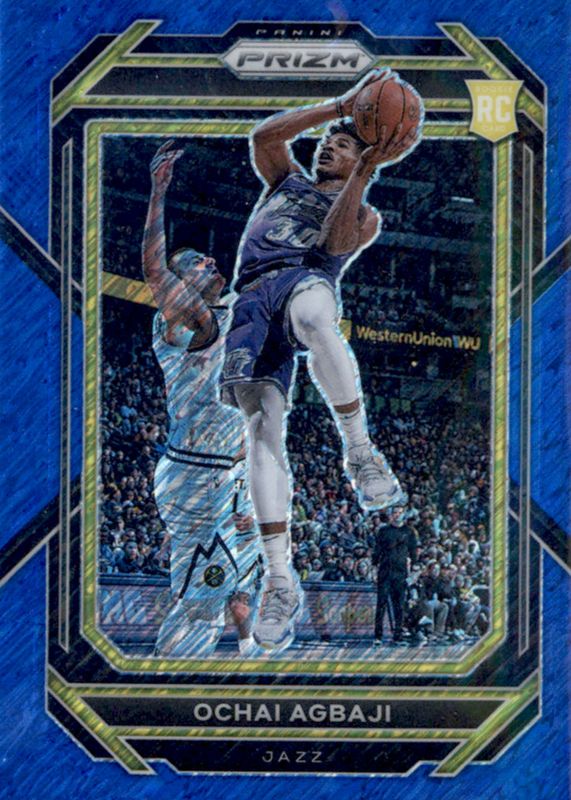 The Ochai Agbaji 2022 Prizm #267 Blue Shimmer /35 Rookie card in Raw condition has not changed in price in the last 30 days and was last sold for $9.18 .