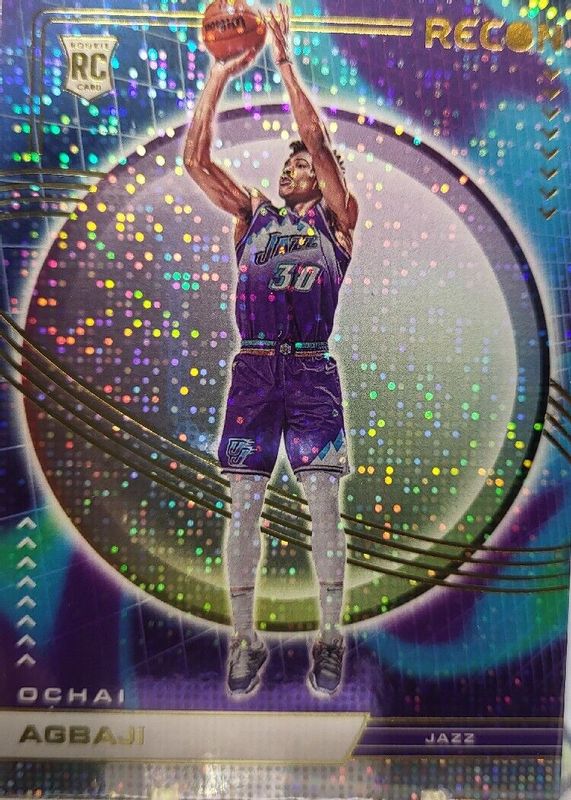 This card is 1 of 34 Ochai Agbaji's card variations in the 2022 Recon set being tracked by Sports Card Investor, including Base, Holo, Pink, Bronze /299, and Red /199.