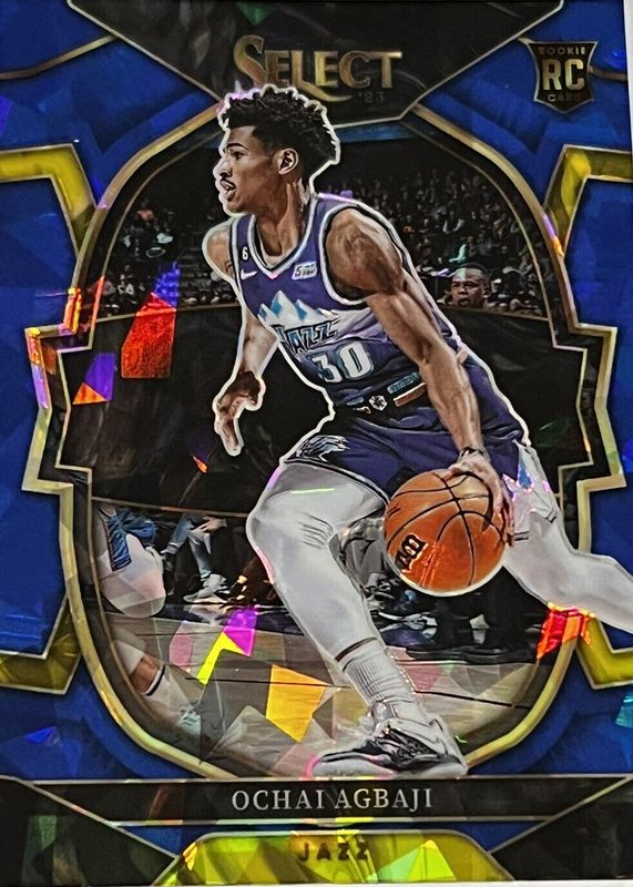 Ochai Agbaji 2022-23 Select Concourse Blue Cracked Ice Prizm RC #96 Jazz