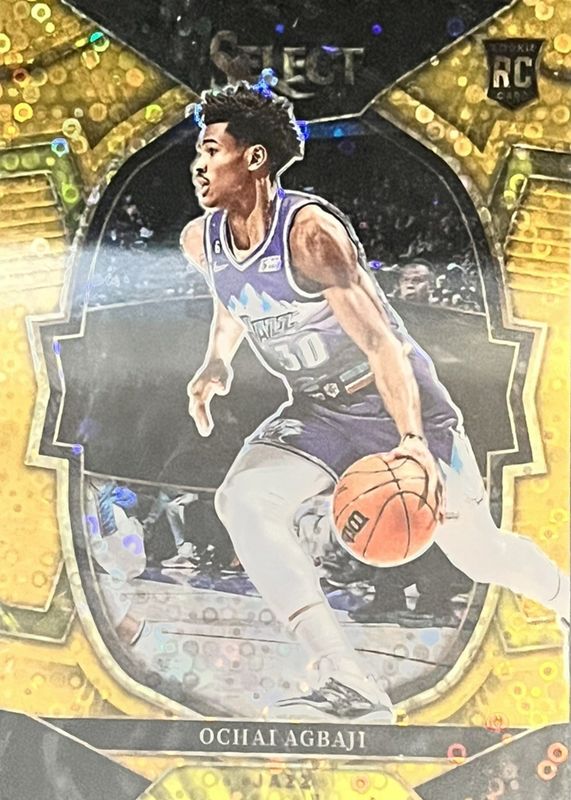 The Ochai Agbaji 2022 Select #96 Concourse Gold Disco /10 Rookie card in Raw condition has not changed in price in the last 30 days and was last sold for $99.99 .