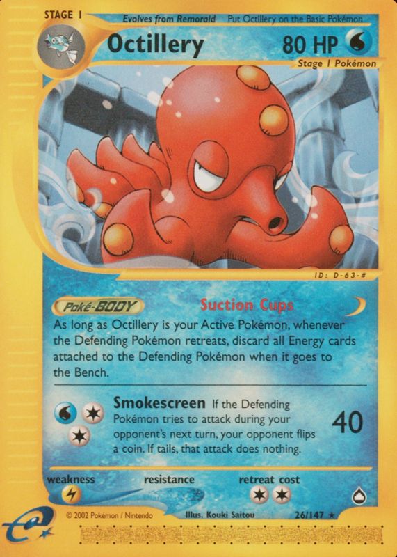 Octillery 2003 Aquapolis #026/147 Base RAW TCG (NEAR MINT) Price Guide