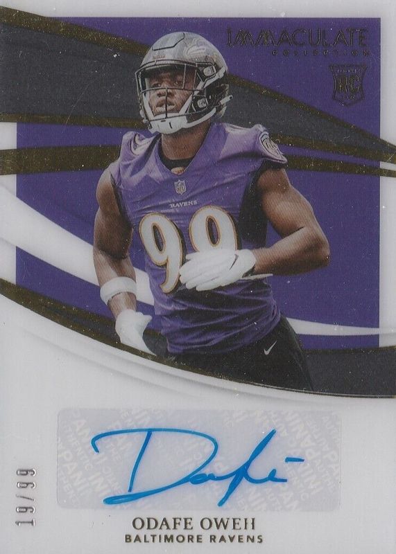This card is 1 of 3 Odafe Oweh's card variations in the 2021 Immaculate set being tracked by Sports Card Investor, including Rookie Autographs - Gold /25, and Rookie Autographs - Platinum /1.