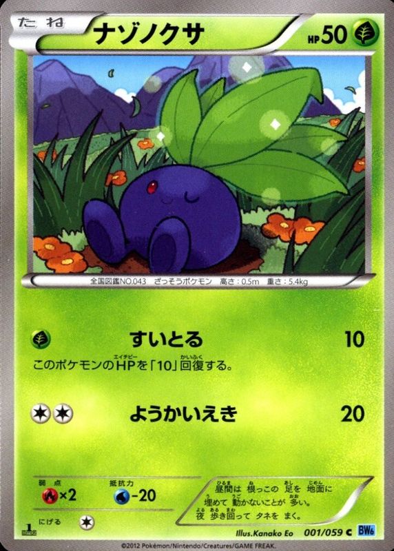 The Oddish 2012 Japanese Black & White: Freeze Bolt #001/059 1st Edition card in Raw TCG (Near Mint) condition has not changed in price in the last 30 days and was last sold for $5.34 .