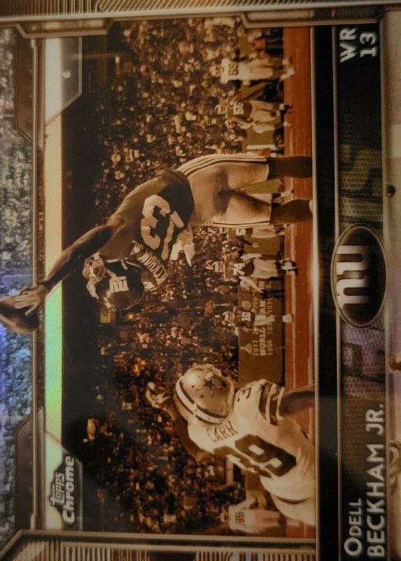 The Odell Beckham Jr. 2015 Topps Chrome #18 Sepia Refractor /99 card in Raw condition has not changed in price in the last 30 days and was last sold for $89.99 .