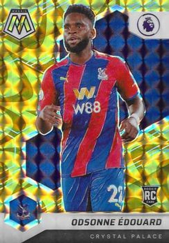 The Odsonne Edouard 2021 Mosaic Premier League #137 Reactive Gold Rookie card is 1 of 24 Odsonne Edouard's card variations in the 2021 Mosaic Premier League set being tracked by Sports Card Investor, including Base, Blue Pulsar, Choice Peacock, Choice Red & Green, and Genesis.