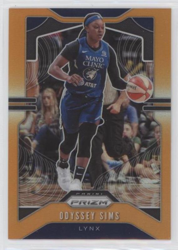 The Odyssey Sims 2020 Prizm WNBA #51 Orange /65 card is 1 of 52 Odyssey Sims' card variations in the 2020 Prizm WNBA set being tracked by Sports Card Investor, including Base, Green, Green Ice, Hyper, and Ice.