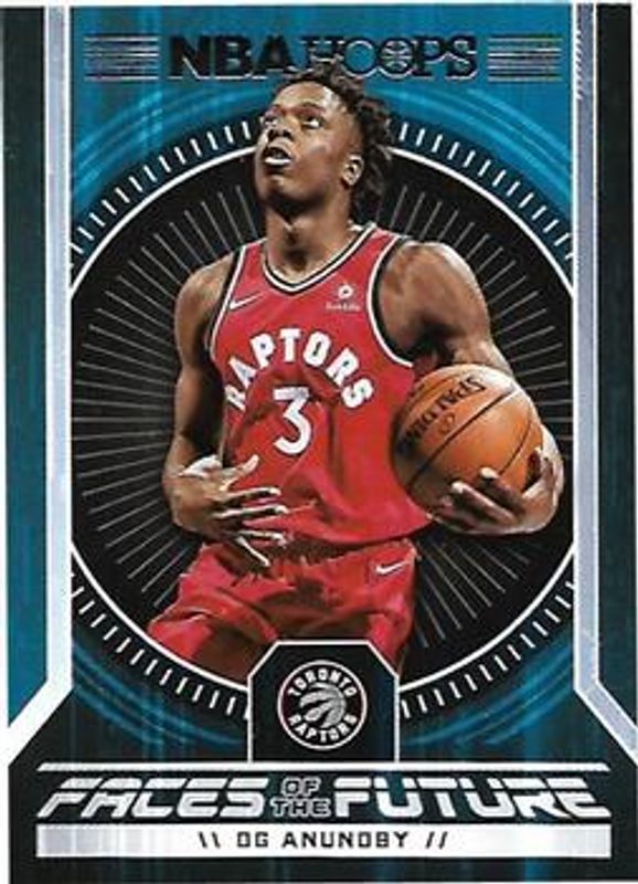 The OG Anunoby 2017 Hoops #15 Faces of the Future Rookie card is 1 of 30 OG Anunoby's card variations in the 2017 Hoops set being tracked by Sports Card Investor, including Base, Premium Factory Set /199, Blue, Great SIGnificance, and Hot Signatures Rookies.