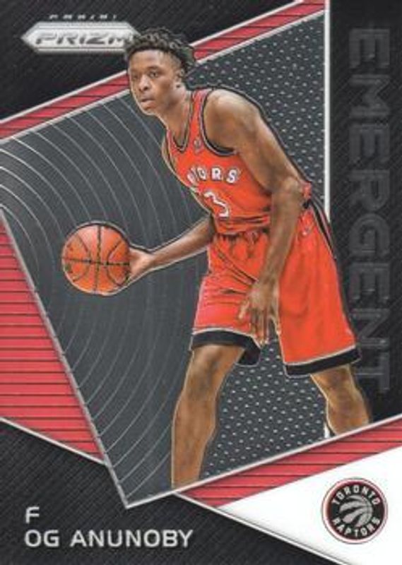 The OG Anunoby 2017 Prizm #EM-OGA Emergent Rookie card is 1 of 46 OG Anunoby's card variations in the 2017 Prizm set being tracked by Sports Card Investor, including Base, Fast Break, Green, Hyper, and Red White Blue.