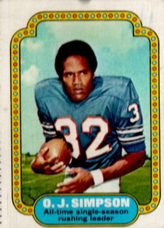 The OJ Simpson 1974 Topps #1 Base card is 1 of 2 OJ Simpson's card variations in the 1974 Topps set being tracked by Sports Card Investor, including Base.