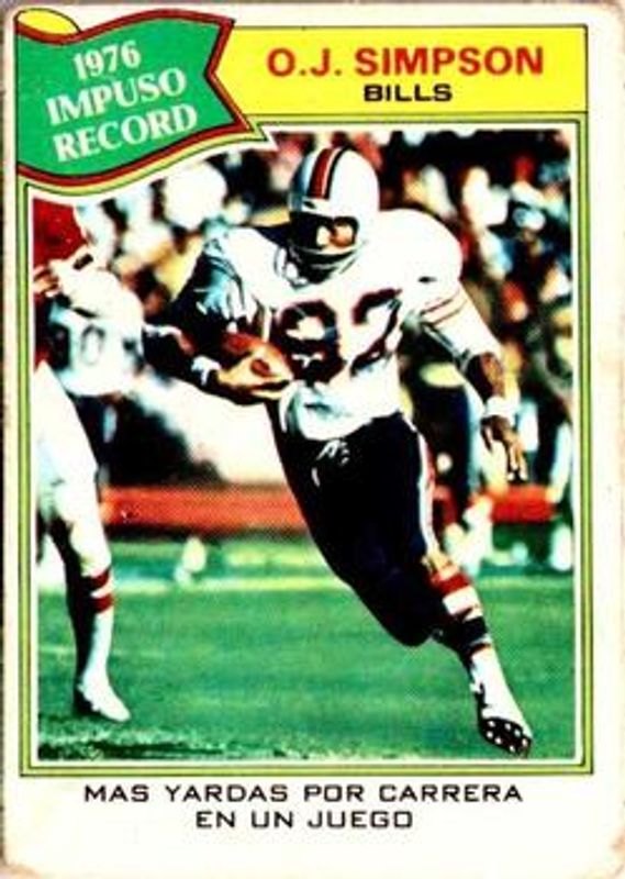 The OJ Simpson 1977 Topps Mexican #453 Base card is 1 of 2 OJ Simpson's card variations in the 1977 Topps Mexican set being tracked by Sports Card Investor, including Base.