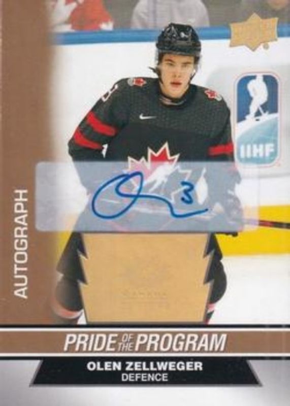 The Olen Zellweger 2023 Upper Deck Team Canada Juniors #69 Signatures card is 1 of 71 Olen Zellweger's card variations in the 2023 Upper Deck Team Canada Juniors set being tracked by Sports Card Investor, including #124 Base, #3 Base, #69 Base, #124 Clear Cut, and #69 Clear Cut.