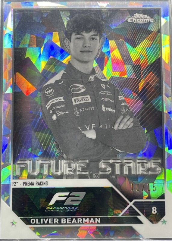 This card is 1 of 8 Oliver Bearman's card variations in the 2023 Topps Chrome Formula 1 Sapphire Edition set being tracked by Sports Card Investor, including Base, Aqua /99, Gold /50, Orange /25, and Purple /10.