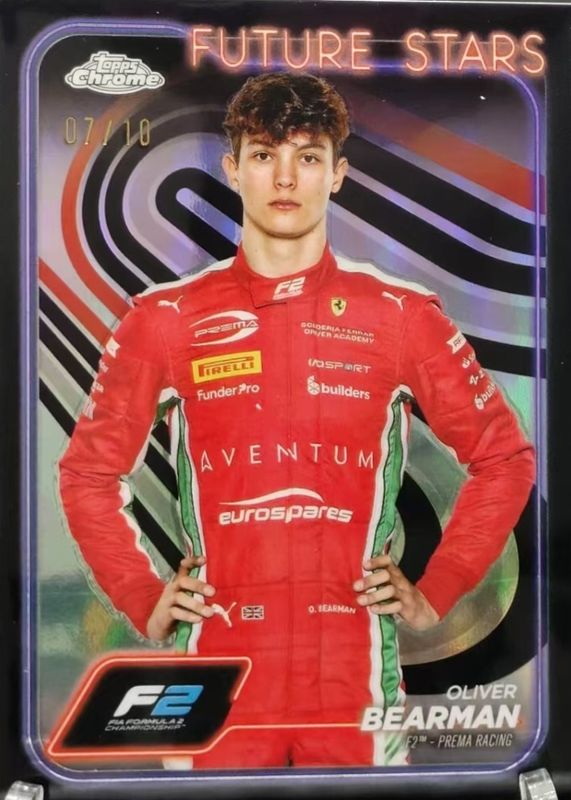 The Oliver Bearman 2024 Topps Chrome Formula 1 #21 Black Refractor /10 card in Raw condition has not changed in price in the last 30 days and was last sold for $62.00 .