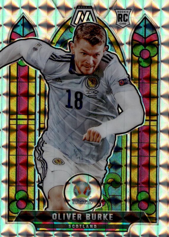 The Oliver Burke 2021 Mosaic Euro #17 Stained Glass /(SSP) card in Raw condition has not changed in price in the last 30 days and was last sold for $15.50 .