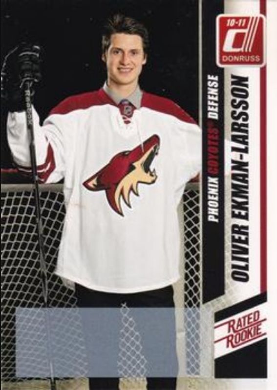 The Oliver Ekman-Larsson 2010 Donruss #290a Base Rookie card is 1 of 3 Oliver Ekman-Larsson's card variations in the 2010 Donruss set being tracked by Sports Card Investor, including Base, and Rated Rookies Autographs /100.